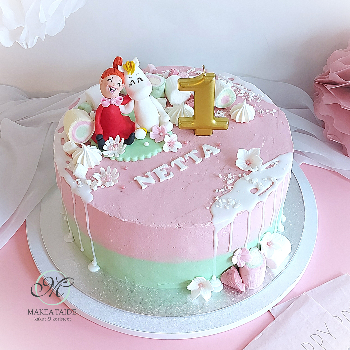 Kakku toteutettu asiakkaan lähettämän kuvan perusteella synttärisankarien