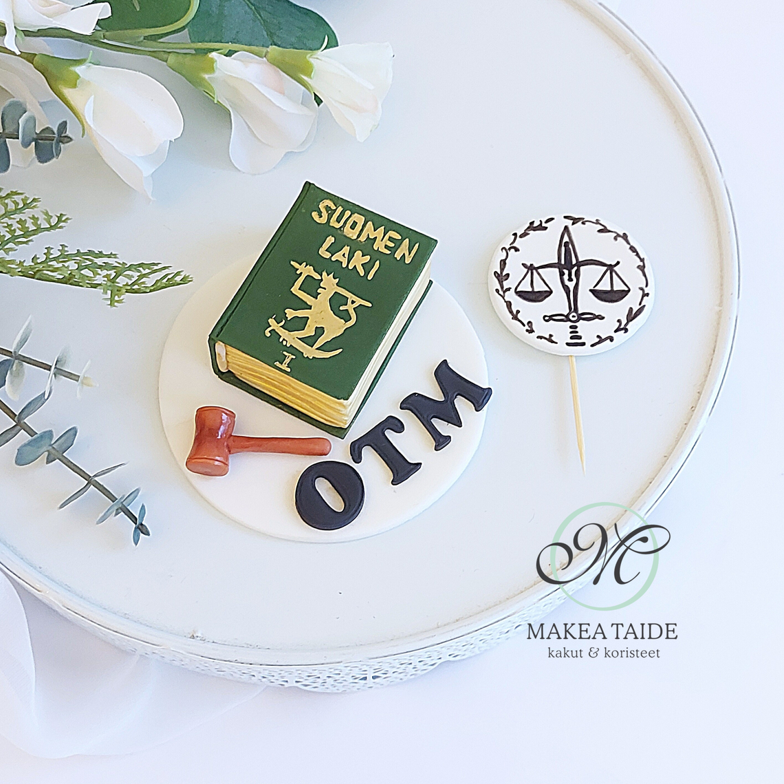 Oikeustieteen maisterille. (Tämä koristemalli ei sovellu postitukseen vasaran asennosta johtuen. )