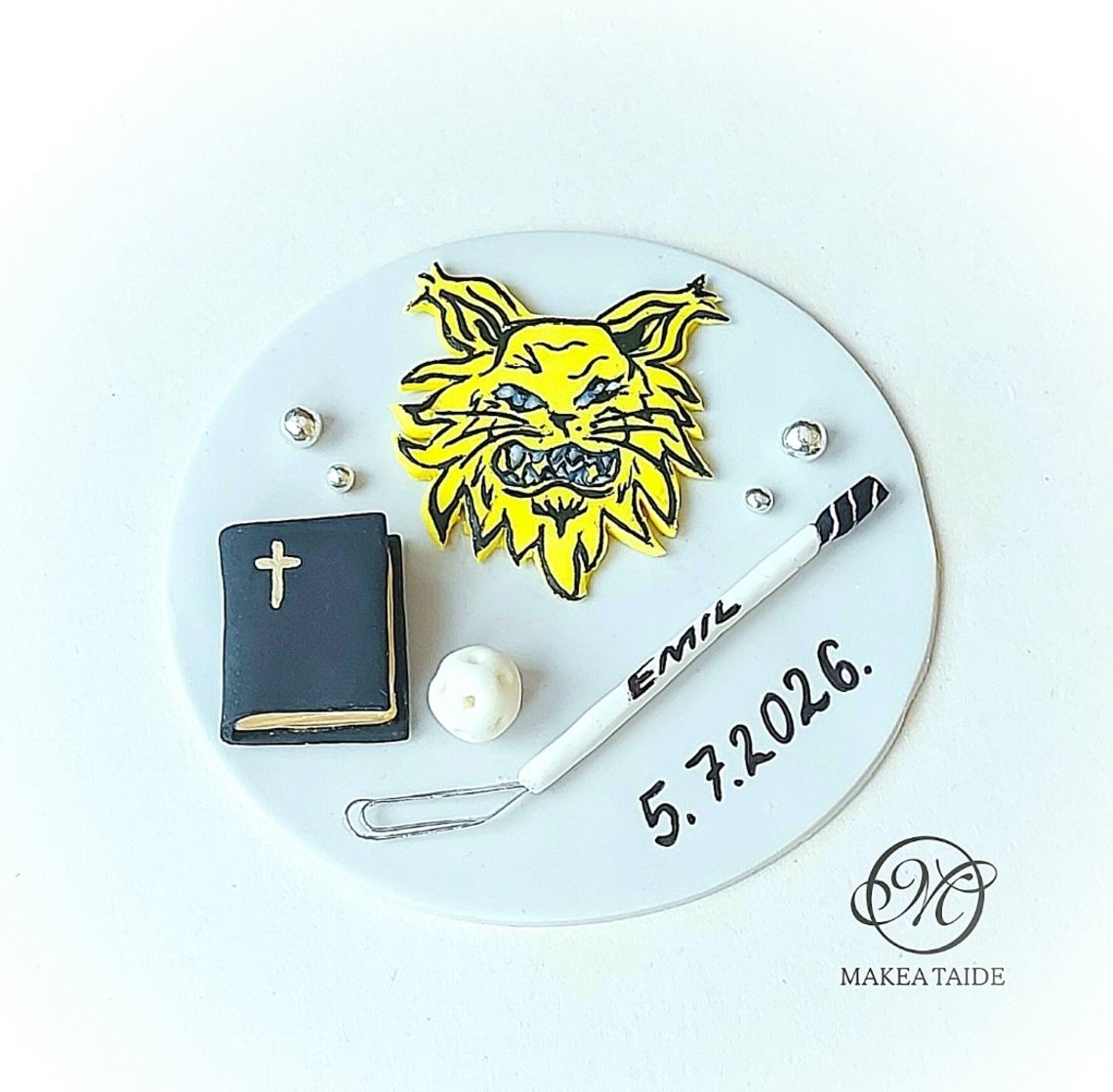Rippikoriste pesäpalloa harrastavalle isolla sokerimassaruusulla, ilman ristiä.