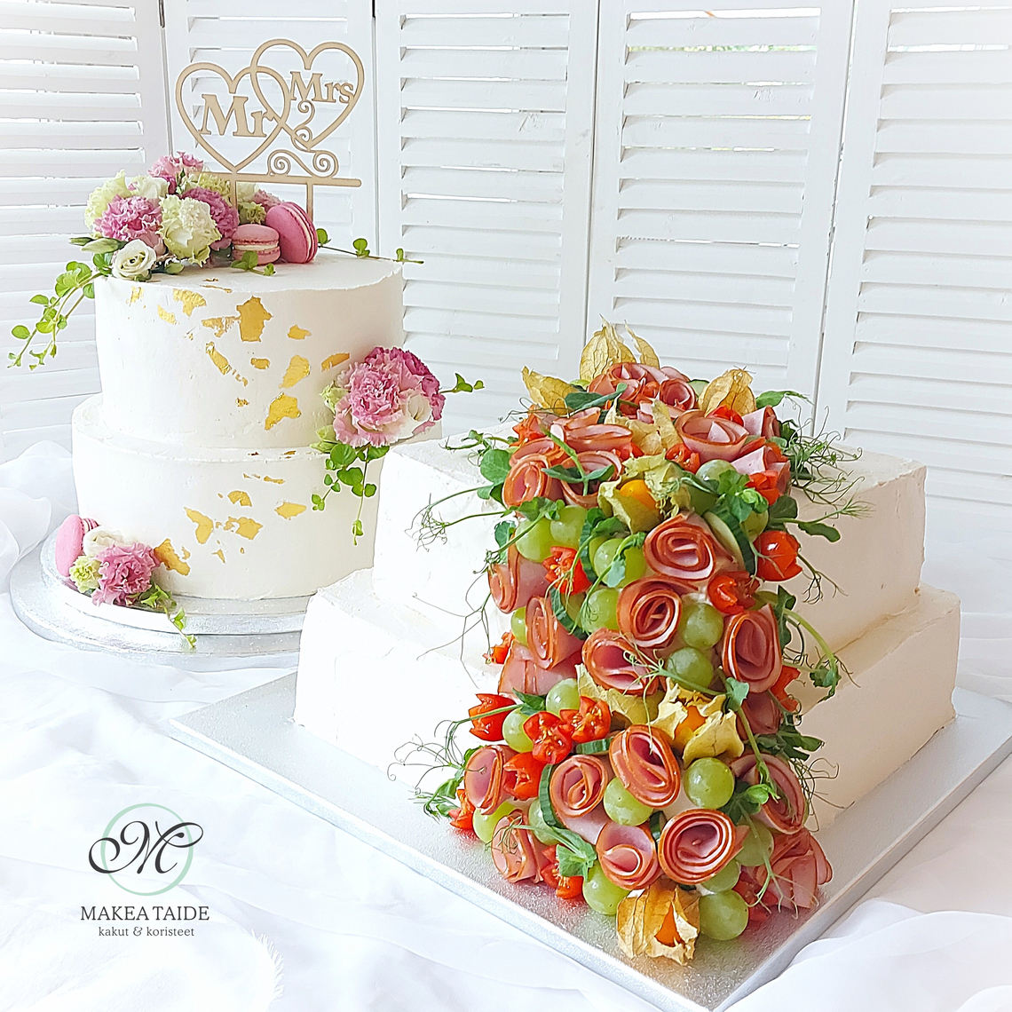 Hääkakut teemavärein toiveiden mukaan toteutettuna.