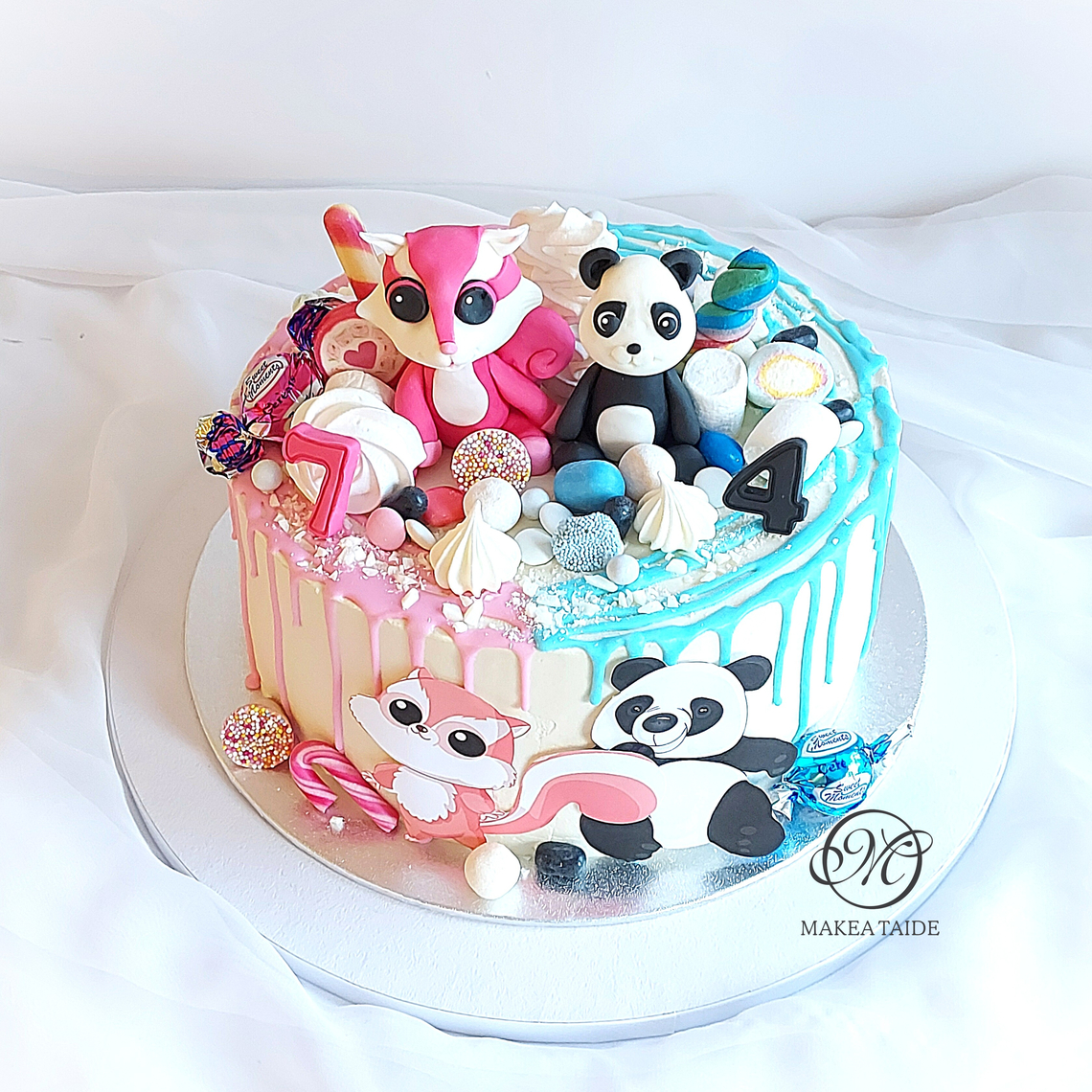 Kakku toteutettu asiakkaan lähettämän kuvan perusteella synttärisankarien