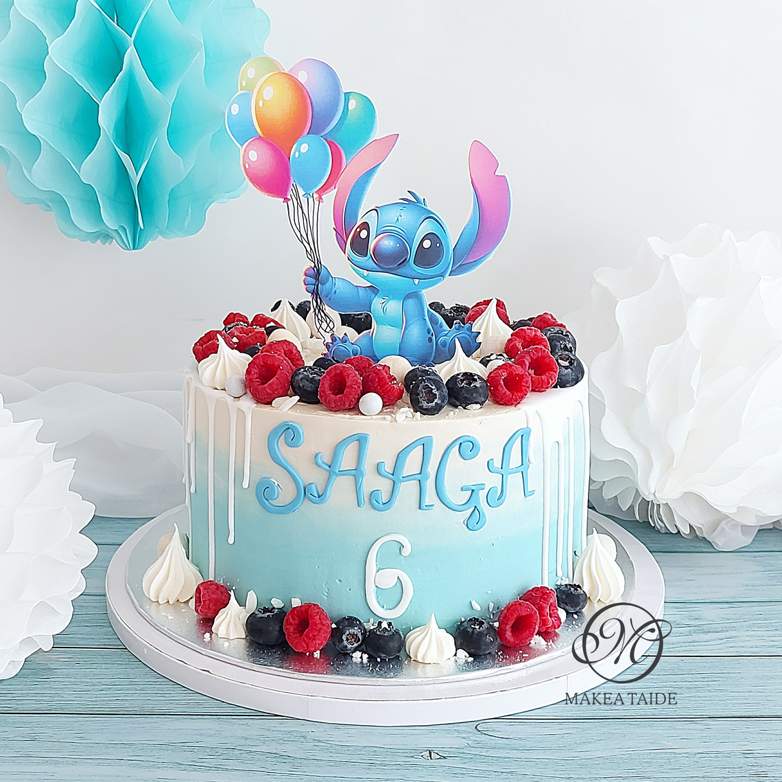 Kakku toteutettu asiakkaan lähettämän kuvan perusteella synttärisankarien