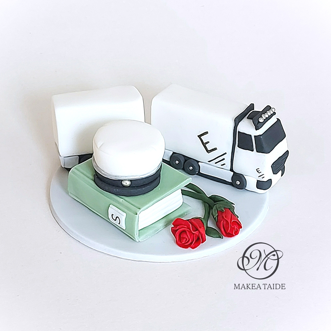 Yo- kakunkoriste isolla sokerimassaruusulla, kirjapinolla ja Yo-lakilla. Tilaajan toivevärein.